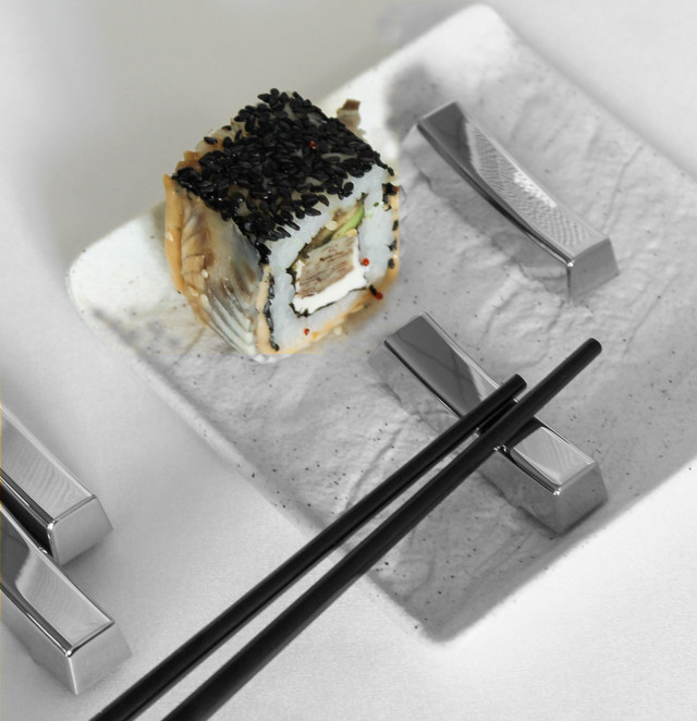 Комплект срібної підставки та паличок для суші срібло REMY-DECOR – найбільш універсальний варіант для будь-якого ресторану. Вони чудово впишуться в інтер'єр, в якій би стилістиці він не був оформлений. Все завдяки тому, що цей колір добре поєднується з іншими кольорами і відтінками. Якщо ваш заклад оформлений у світлих тонах, то ці палички відіграватимуть роль стильного контрастного елемента. Якщо ж інтер'єр витриманий у тонах темних, то чорні столові прилади точно гармоніюватимуть із навколишнім оточенням.